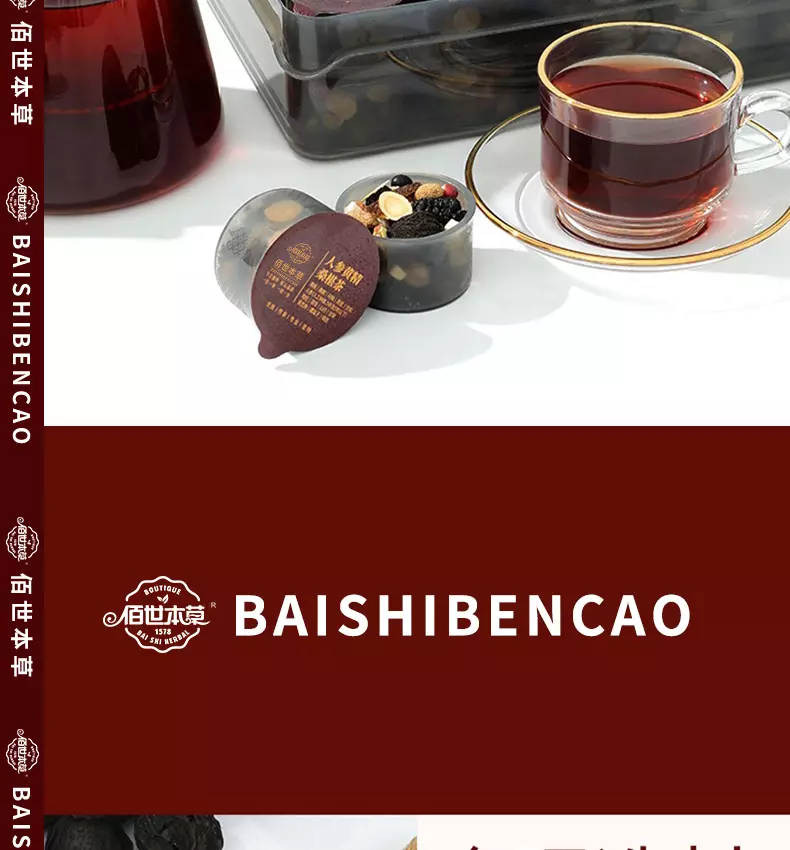 原料与配料: 人参片 黄精、桑椹、乌梅、黑豆、荧实、黑芝麻、枸杞、茯苓、山药、甘草、覆盆子、橘皮